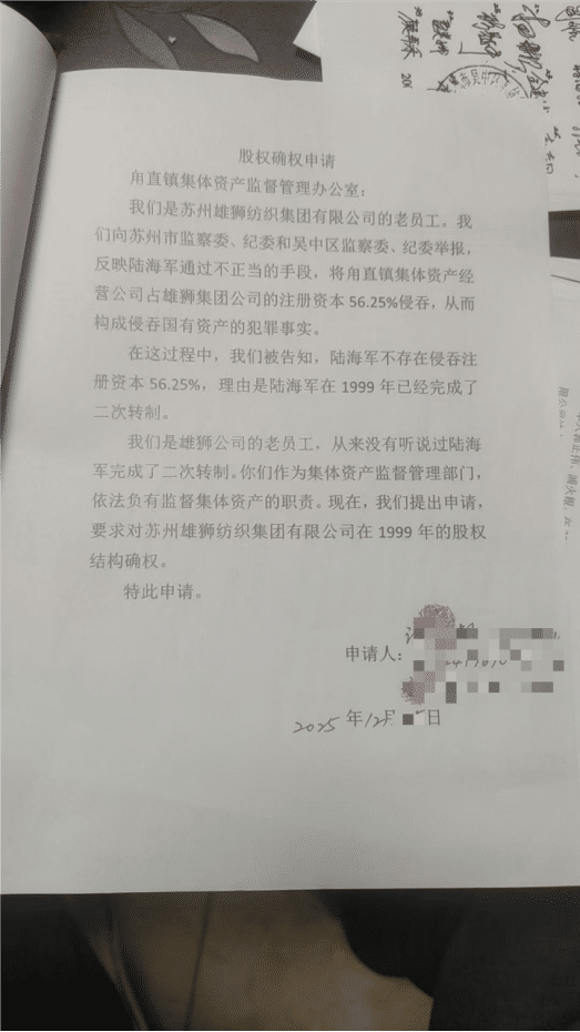 我们是原苏州雄狮纺织有限公司(下称 “雄狮纺织”,曾用名:苏州市雄狮纺织品有限公司、苏州雄狮纺织集团有限公司)的多名老员工和原始小股东。十余年来,我们始终存有疑问:这家最初由集体控股的企业,原本归属集体的 270 万元股权发生权属变更,相关过程存在诸多待解疑点。为厘清这笔集体资产的权属变更细节,我们多方奔走、查阅资料,希望相关部门能介入调查,还原事实真相,守护集体资产。