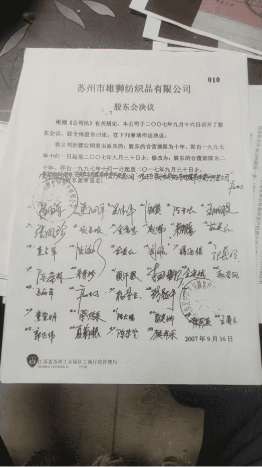 我们向上级相关部门反映情况时,曾得到 “1999 年公司已完成二次转制” 的口头说法,但该说法与客观留存文件存在明显矛盾。2007 年 9 月,雄狮纺织召开股东会并形成正式决议,这份经多名原始小股东签字确认且完成工商备案的文件,侧面印证彼时集体仍为公司控股大股东。
