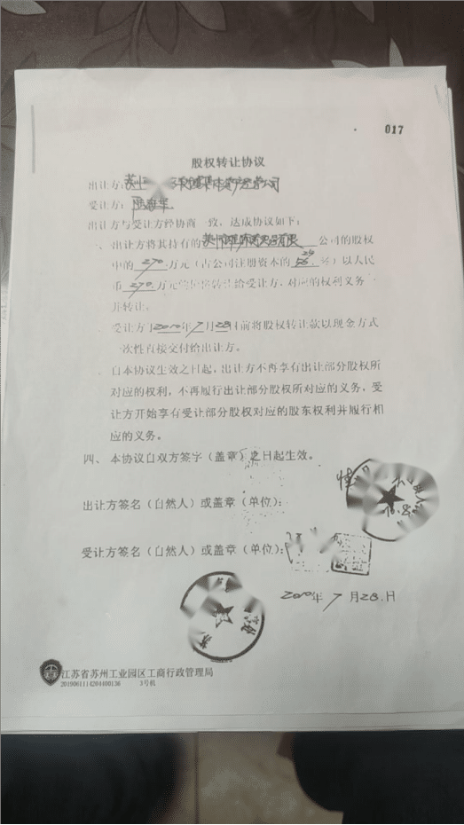 我们在调查中发现,工商备案有 2010 年 7 月 28 日的《股权转让协议》,显示原本持有公司 56.25% 集体股权的原车坊镇集体资产经营公司,将对应 270 万元出资额的全部集体股权,转让给了公司原个人股东陆海军。该次集体资产权属的重大变更,未向企业员工公示,也未征求原始小股东意见,相关流程合规性存疑。